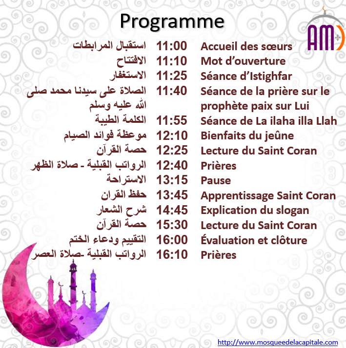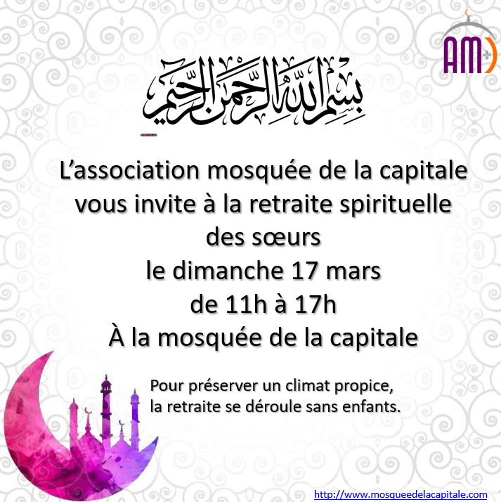 À l’instar des années précédentes; vous êtes invitées à une retraite spirituelle (Iitikaf) à la Mosquée de la Capitale soit